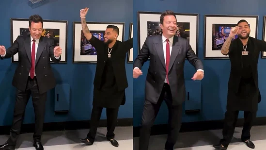 On Wednesday, The Tonight Show posted a sweet video on its official Instagram page showing Jimmy following Karan Aujla’s bhangra steps. The video began with Jimmy greeting Karan with a warm hug. The singer was dressed in a traditional black kurta-pyjama with a matching sleeveless jacket. Karan then told Jimmy, “So I am going to teach you some bhangra today.”