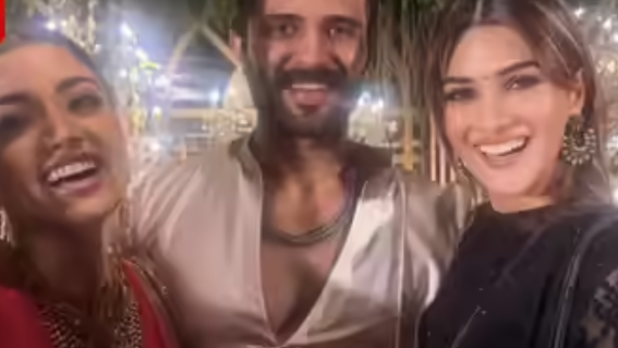 Kriti Sanon joined Vijay Deverakonda and Rashmika Mandanna at a glamorous wedding reception, where the actresses shared a cute moment, delighting fans and sparking excitement over their upcoming film Cocktail 2.